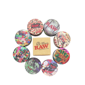 Raw 55MM Aluminum Grinder 12ct Display—a wholesale-ready assortment of durable aluminum grinders. Each unit features precision grinding teeth and compact 55MM design for reliable performance. Perfect for retail shops stocking essential accessories. Includes 12 grinders per display box.
